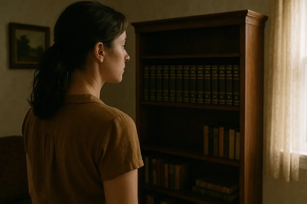 Now we know what matters to her. Not the wallpaper. Not the furniture. The missing volume.